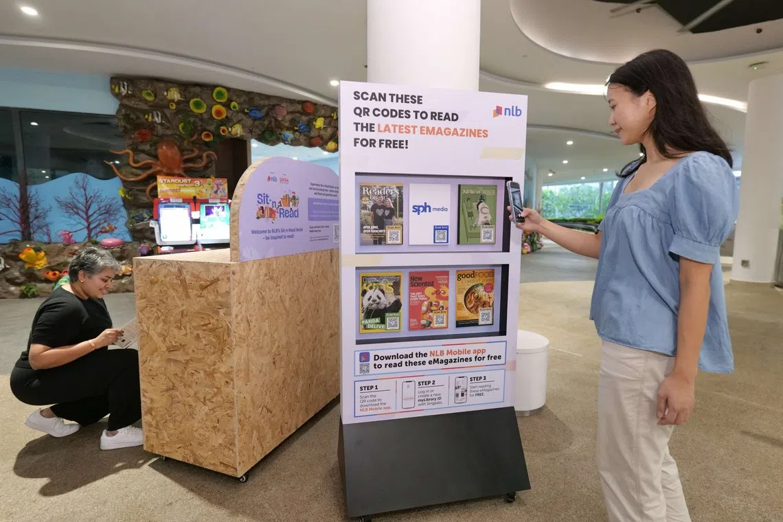 NLB added that the self-service corners at these locations, except The Caffeine Experience, also offer eResources, including eReads screens and MagNode displays where patrons can scan QR codes to access eBooks, eMagazines and eNewspapers on the go.