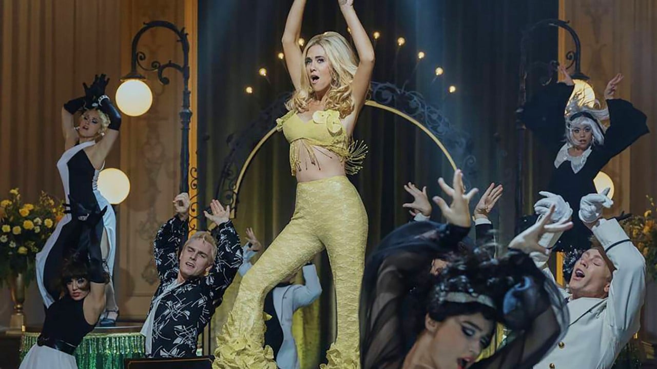 When Kristen Wiig steps out of a vintage Rolls-Royce in the opening scene of season two of Palm Royale, she is sporting a tall, yellow, fringed hat, gold platform sandals and sunny bell-bottoms, with fabric petals that sway with every determined step.