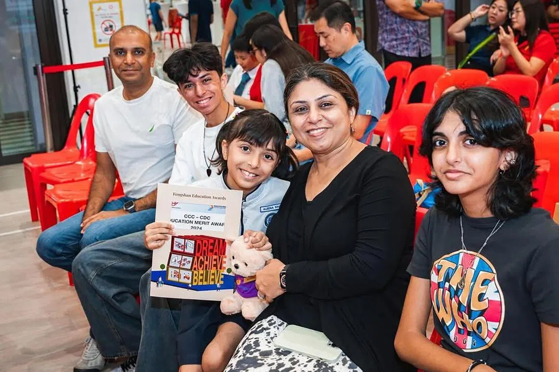 Mr Sarfraz Khan and Mrs Jyoti Khan (second from right) with their children, Ayaan Khan, Aleena Khan and Aliya Khan (left to right).