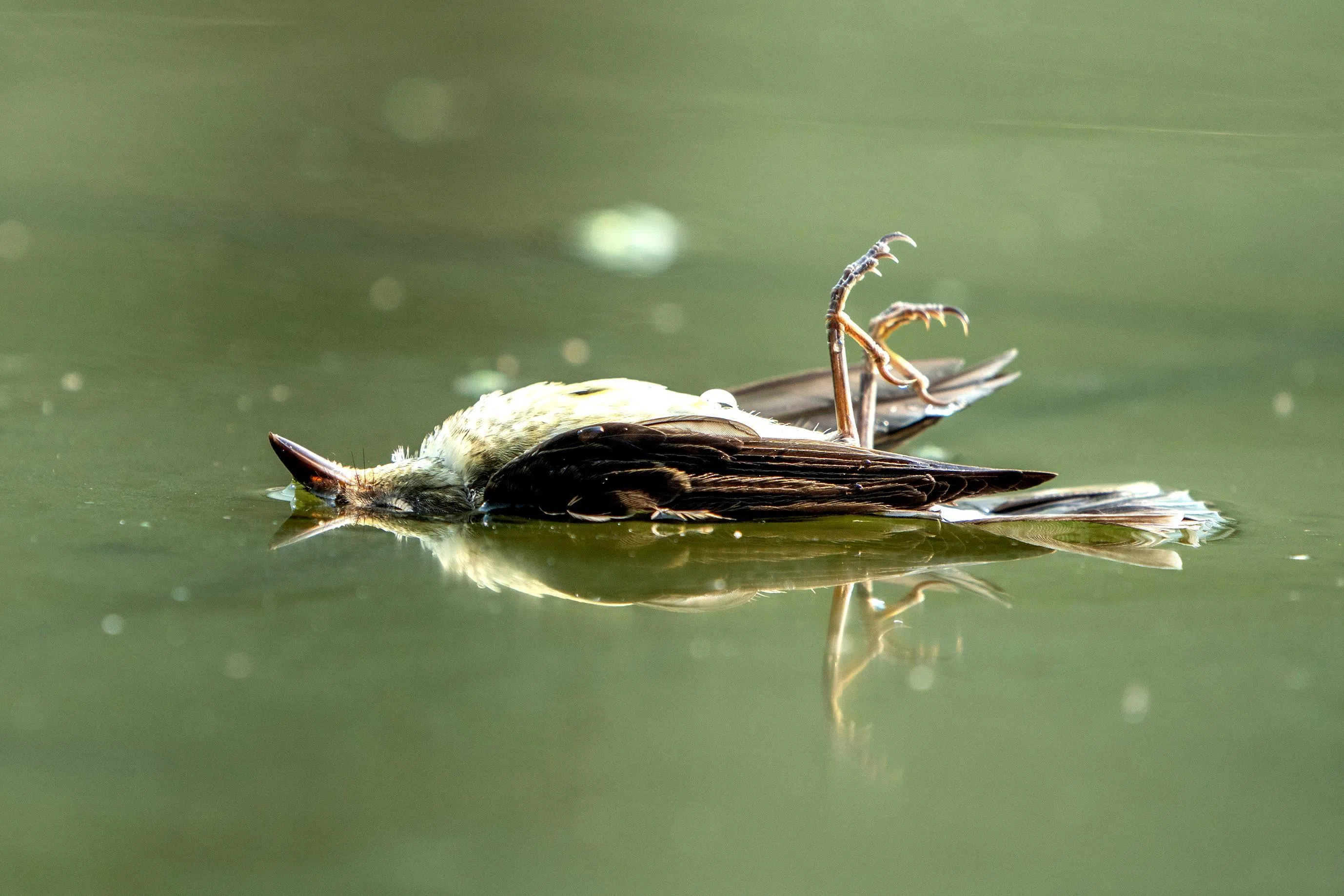 Once birds hit the building, they often fall into the building’s water features and drown.