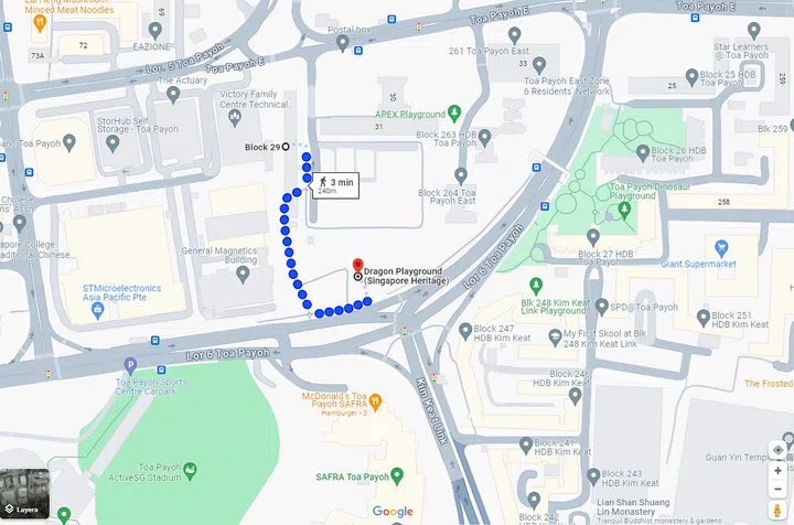 This is the dragon playground. Built in 1979, the Toa Payoh Dragon is the largest and most famous of its kind. Its vibrant mosaic scales, fearsome head, and long, winding body ending in a concrete slide captured the imagination of generations.