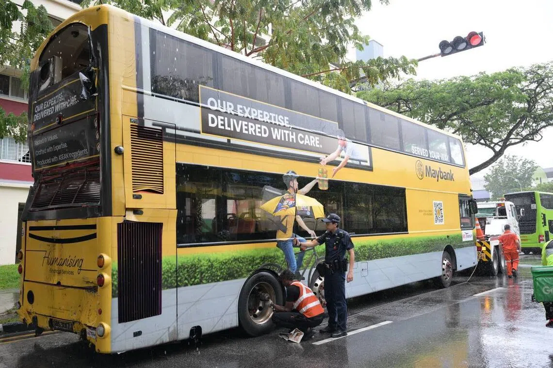 Bus service 98, operated by Tower Transit, had rear-ended an SBS Transit-run bus service 99, which was stationary, at about 10.55am in Jurong West Avenue 1, the Land Transport Authority (LTA) said in a Facebook post at about 2.10pm.