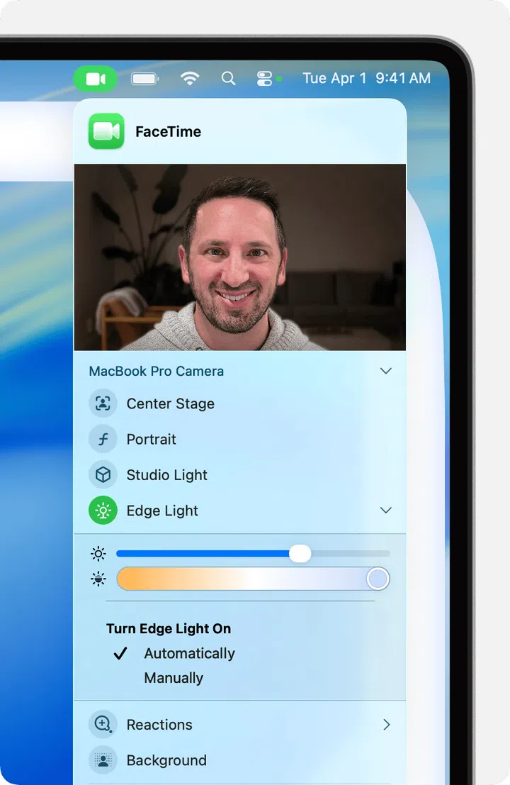 Apple addresses this by adding a new Edge Light feature to macOS 26.2 and later. This is a built-in option that virtually imitates a ring light on your Mac display or monitor.