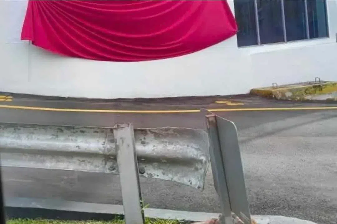 In images uploaded on Instagram page Sgfollowsall at about 2pm on Dec 25, at least three parked vehicles and two walls are seen covered with large pieces of red and yellow cloth.