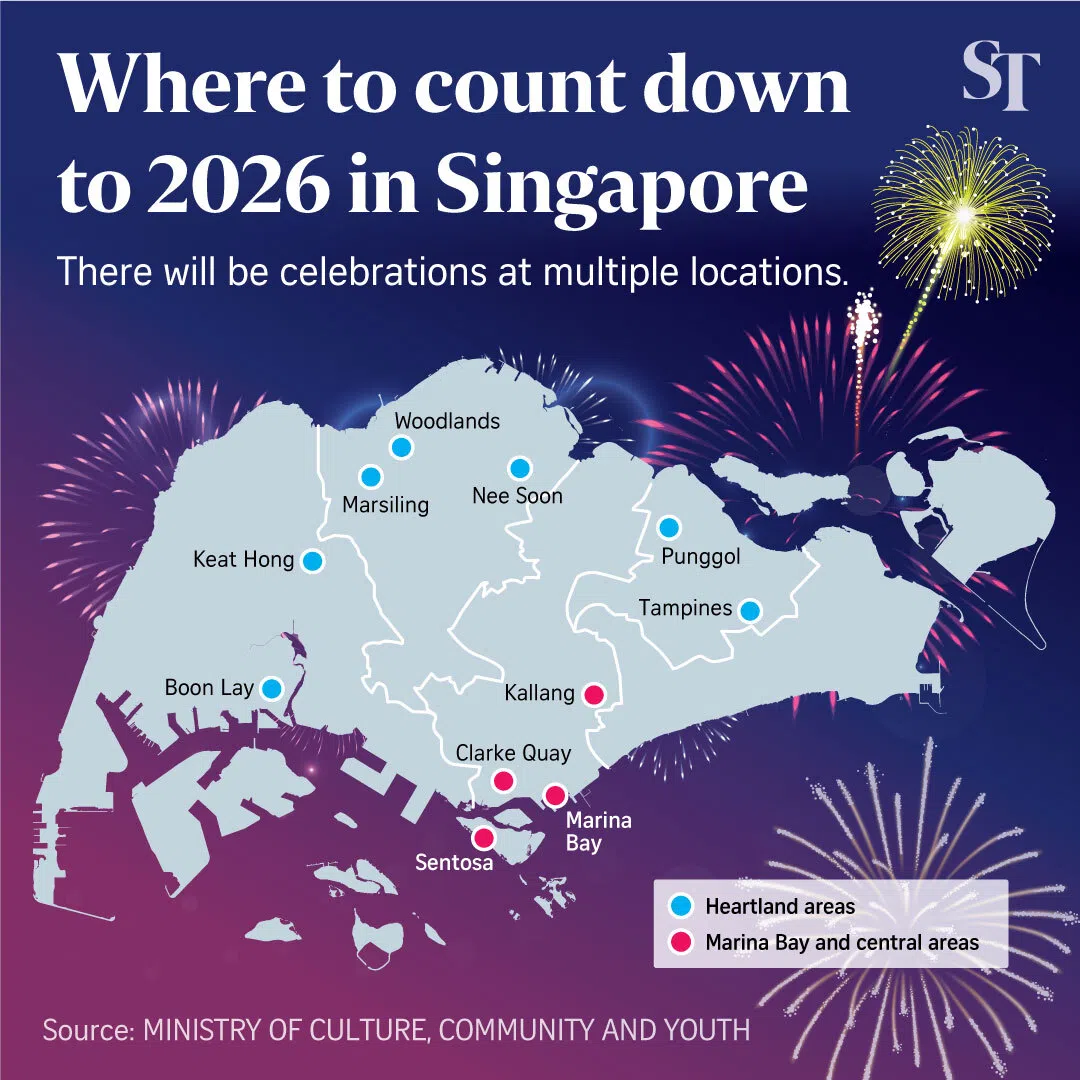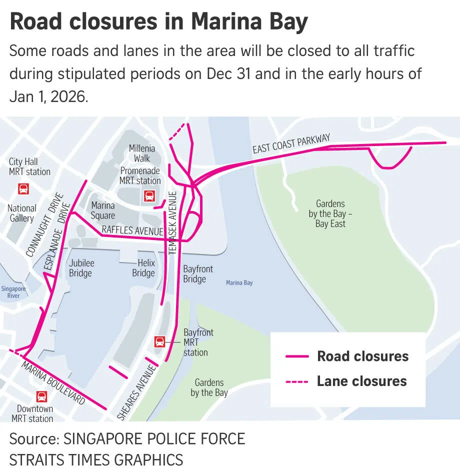SINGAPORE – Road closures and enhanced security measures will be in place during ONE Countdown 2026 on Dec 31 until the early hours of Jan 1, with the events expected to draw huge crowds.