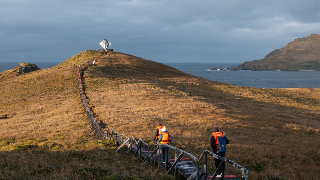 Early in the morning, shortly after five, the tension is mounting. Dawn is breaking, and the sea lies deep and dark as foam dances on the waves. Behind the window in the cabin, it is cosy. Barren rocky outcrops pass by in the distance.