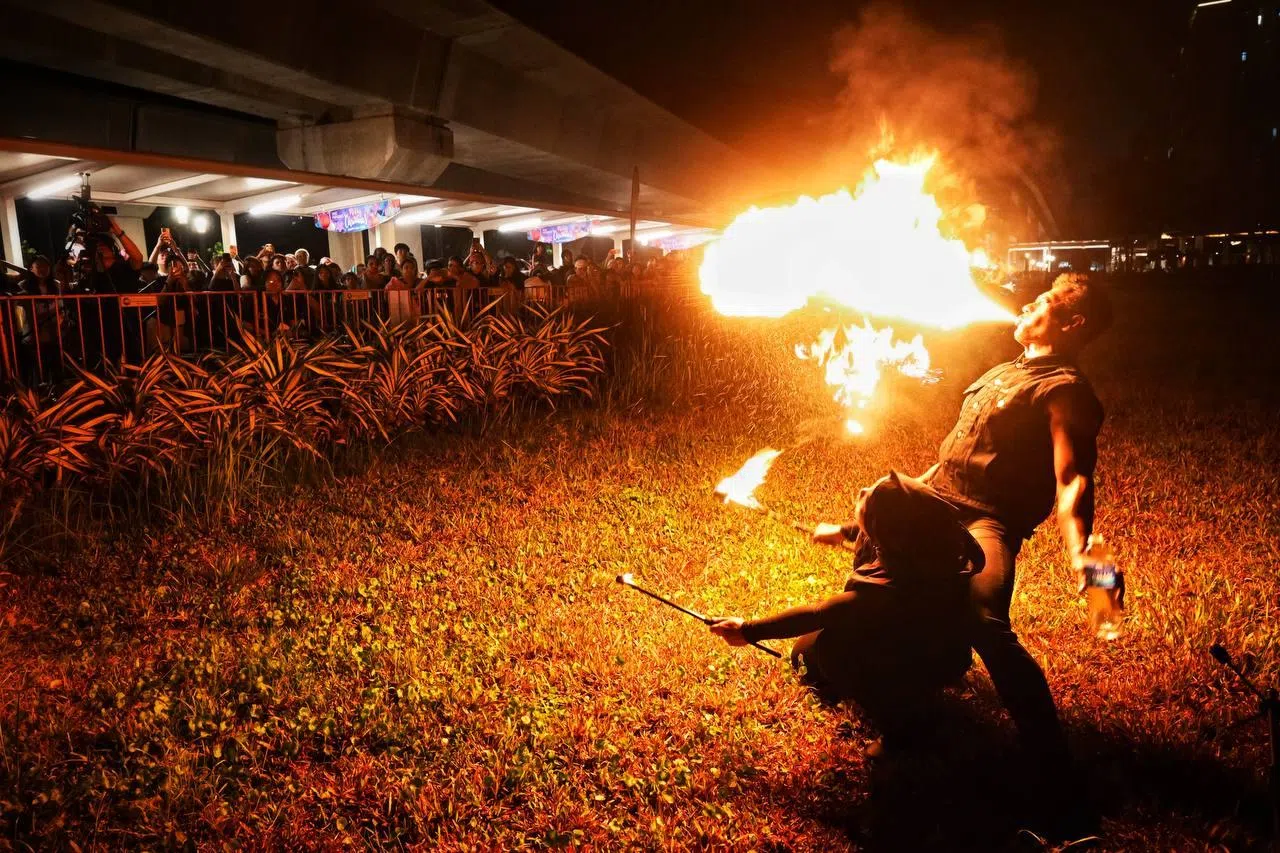 Fire eaters wowing the crowd at ONE Countdown 2026 @ One Punggol.