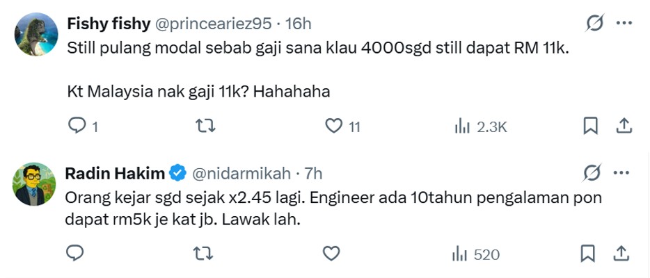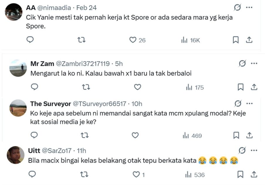However, pro-Madani keyboard warrior CIKYANie (@lady_bugg11) queried whether it would still be worthwhile to earn a living in Malaysia’s affluent neighbour given the ringgit’s strengthening value against the Singapore dollar in recent times.