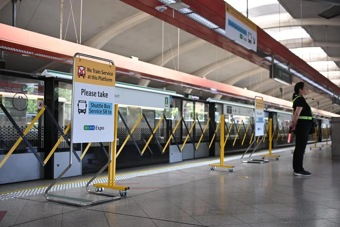 Large signs were on display across the entire station to inform commuters of the suspension of train service between Tanah Merah and Expo stations from March 14 to 17.