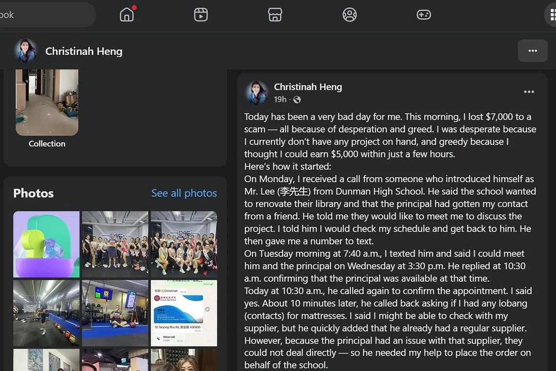 She told ST that while she was aware of bulk order scams, the scheduled meeting with the principal gave her the confidence that the project and mattress purchase were legitimate.