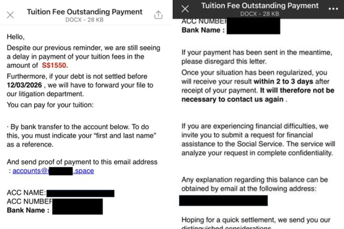 Victims would receive e-mails requesting urgent payment of outstanding school or tuition fees, said the police on March 19.