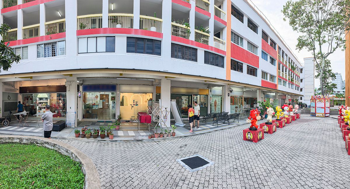 Yuhua Place in Jurong East, like many other HDB precincts in Singapore, conforms to a typical layout – a central market and hawker centre, ringed by about 130 businesses in surrounding blocks.