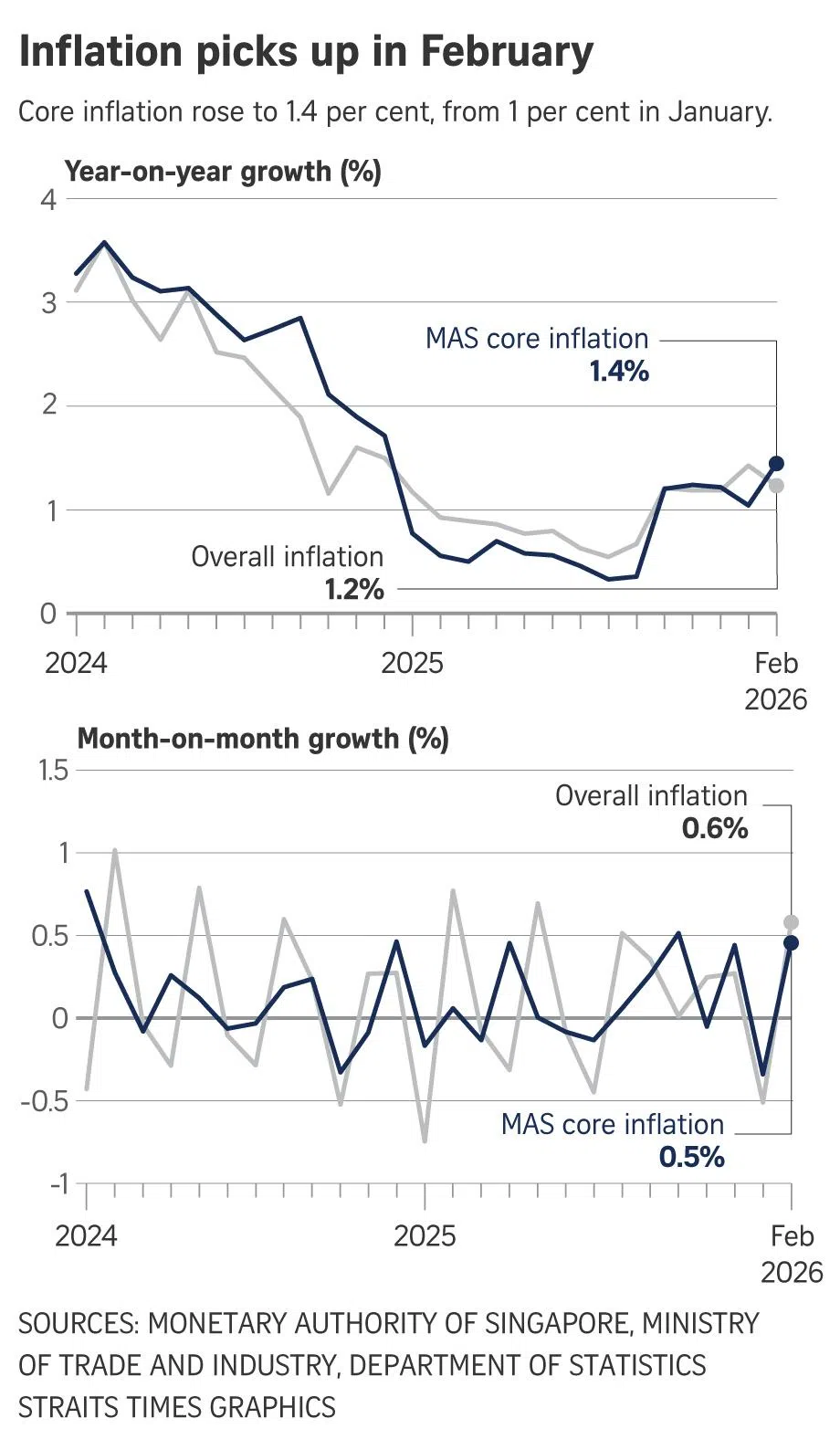 MAS currently forecasts core inflation and overall inflation to average 1 per cent to 2 per cent in 2026.
