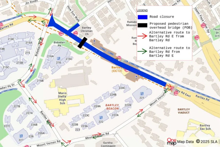 SINGAPORE – A section of Bartley Road between the junction of Mount Vernon Road and Bidadari Park Drive will be closed to traffic for several hours on April 5.