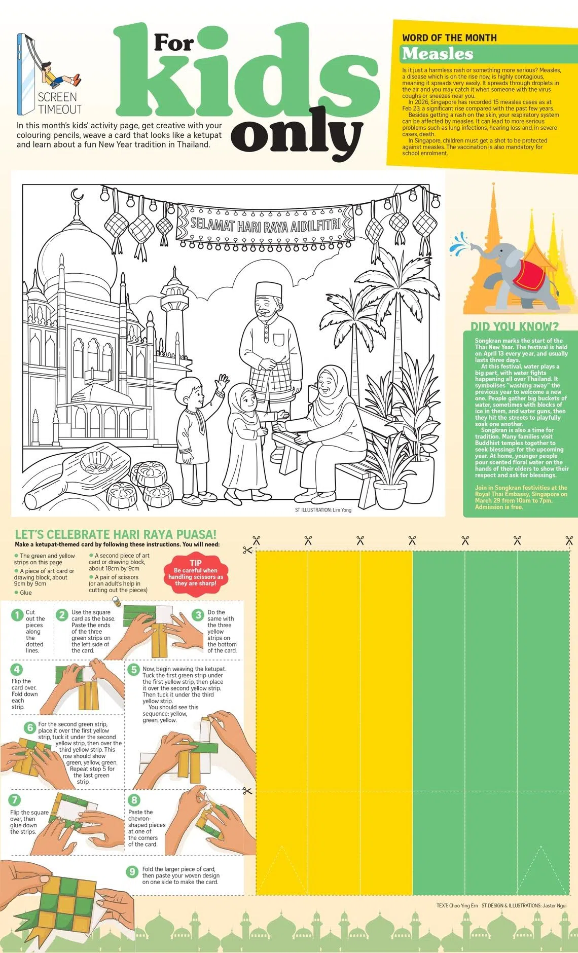 The March edition features a Hari Raya Puasa-themed colouring section, alongside an information snippet on the Thai festival Songkran, which is held in April.