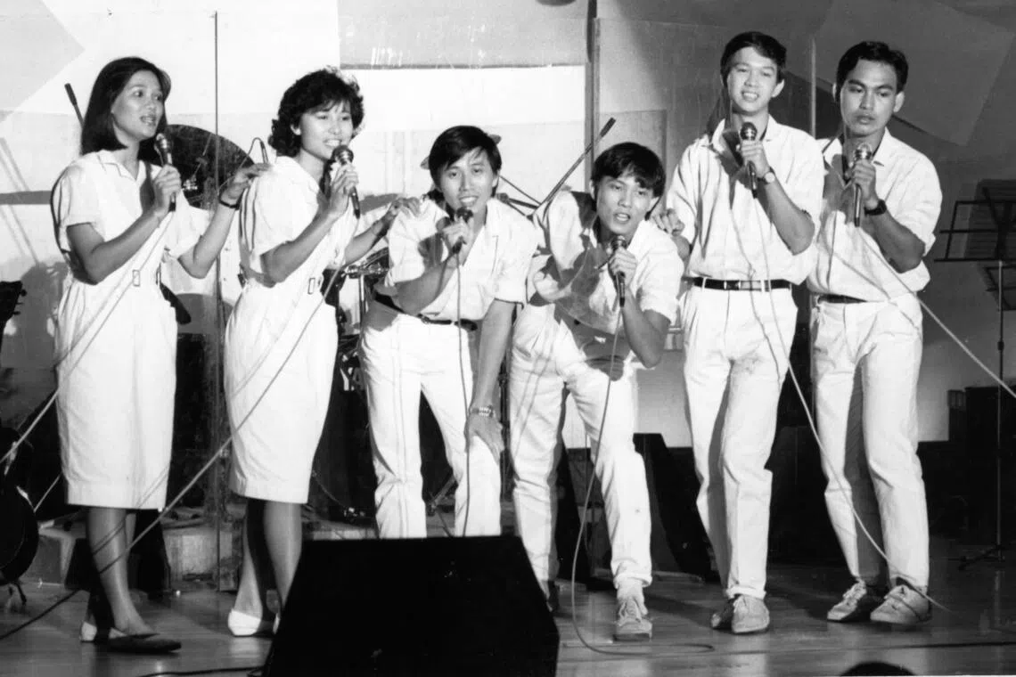 Xinyao pioneers (from left) Wong Ywai Cheng, Teo Kay Kiong, Liang Wern Fook and Billy Koh in 1985.