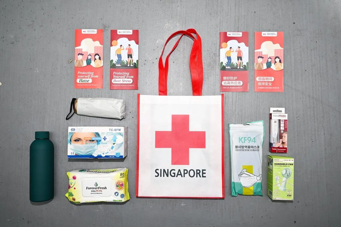 The Singapore Red Cross (SRC) representatives handed the 83-year-old woman a care pack containing a portable fan and face masks, among other items, and shared reminders about staying hydrated, along with tips to identify symptoms of dehydration.