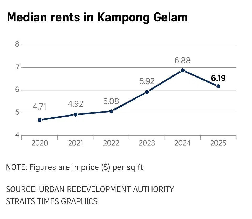 Shophouse sales in the area rose to 22 transactions in 2022 – more than double the 10 the year before – before falling to an average of six transactions a year between 2023 and 2025.