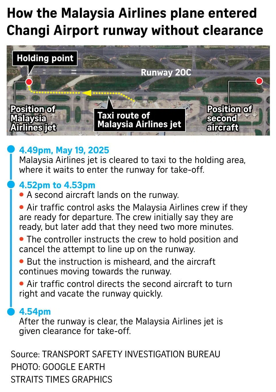 SINGAPORE – In May 2025, a Malaysia Airlines (MAS) jet entered a runway at Changi Airport after an air traffic controller cancelled its earlier clearance to line up for take-off.