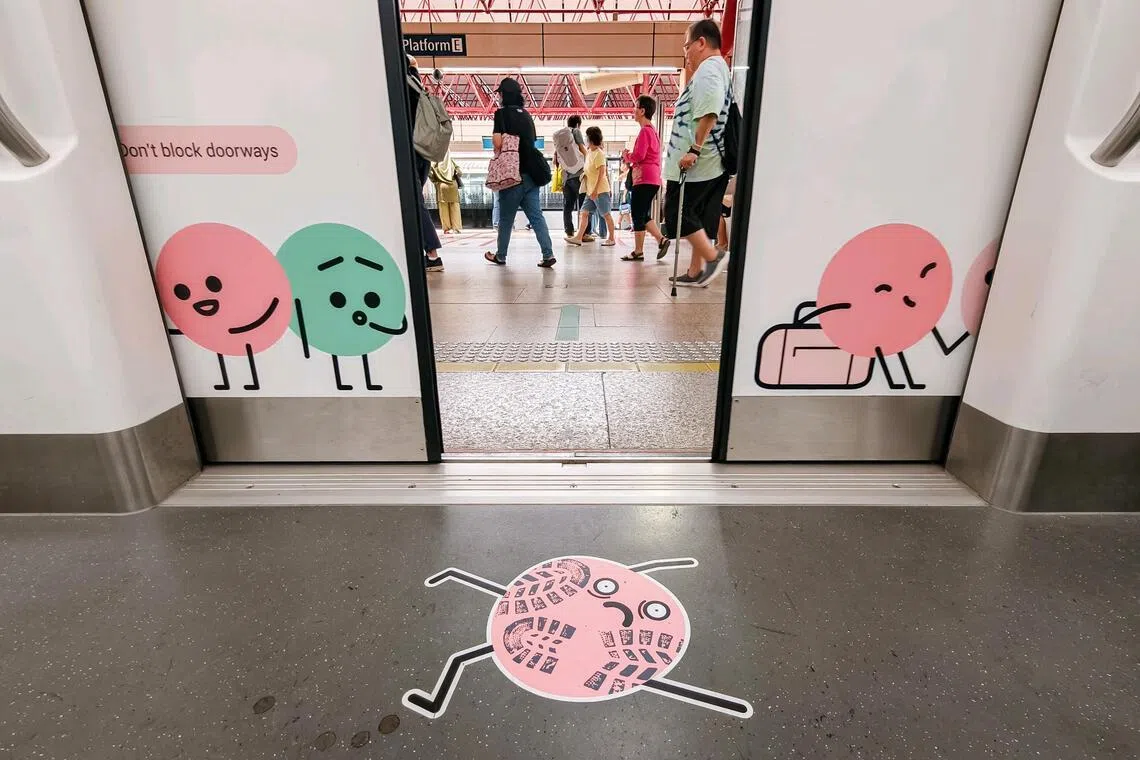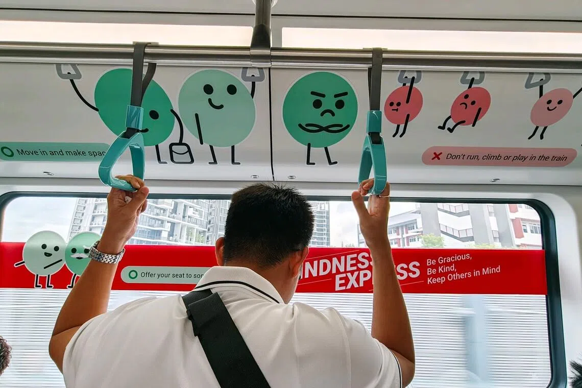 The series, which includes reminders to move to the centre of cabins and not sit on train floors, is part of an SMRT campaign to encourage passengers to be gracious while travelling on trains. It was launched in November 2025.