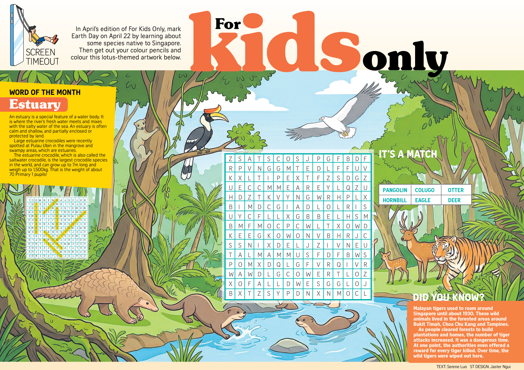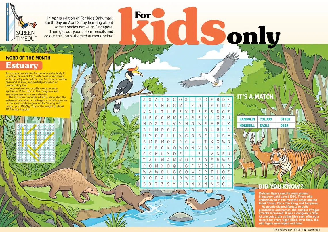 In the April edition, young readers can also find out about the Malayan tiger, which once roamed areas such as Bukit Timah, Choa Chu Kang and Tampines before forests were cleared for development.