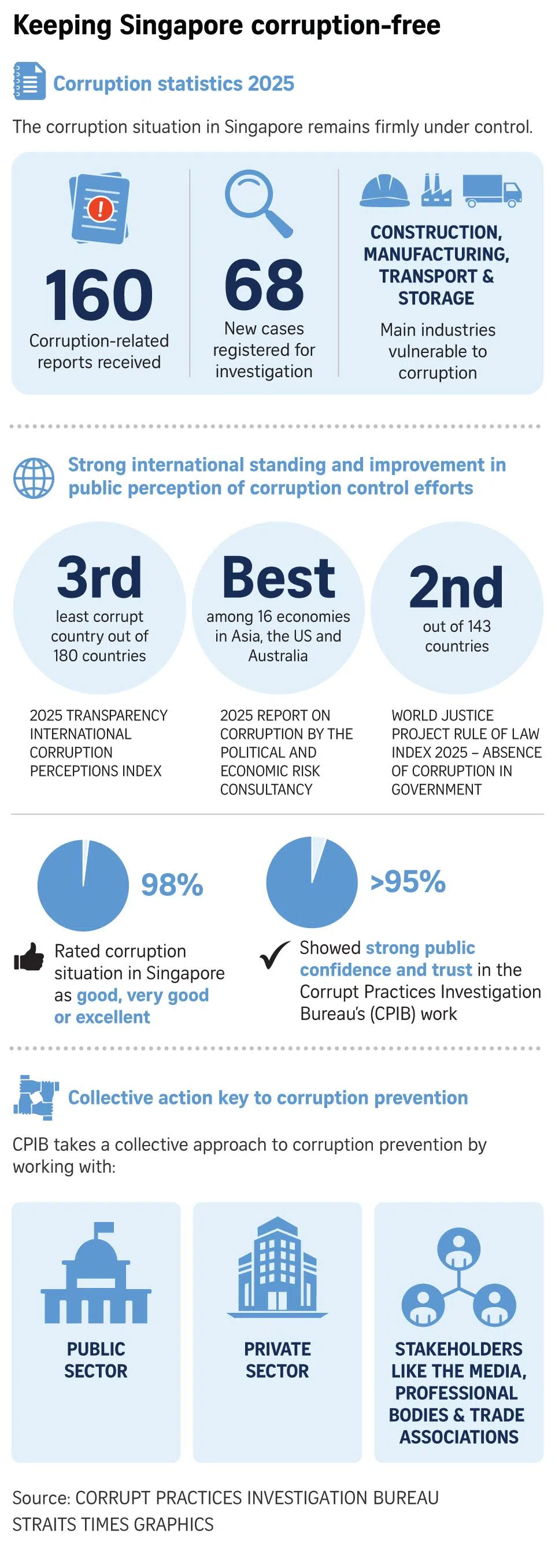 Releasing its annual statistics on April 28, the Corrupt Practices Investigation Bureau (CPIB) said there were 68 cases registered for investigation in 2025, down from 75 in 2024 and 81 cases the previous year.