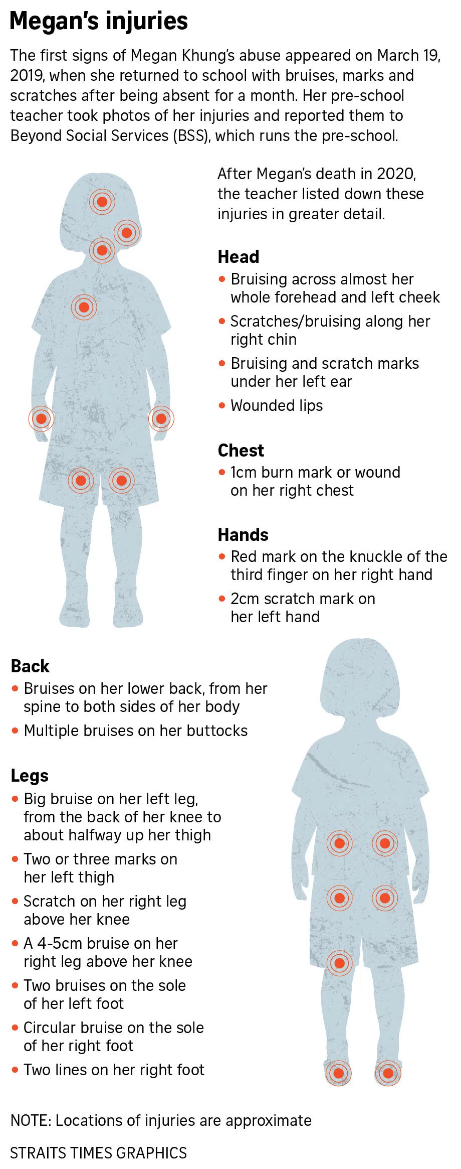 Megan had suffered a year of abuse from February 2019 at the hands of her mother Foo Li Ping, and the woman’s boyfriend Wong Shi Xiang.
