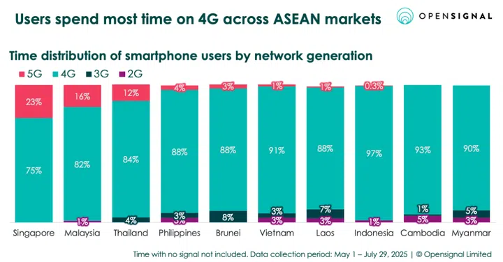 In a whitepaper about ASEAN network infrastructure published by Opensignal, the network analytics firm published various mobile connectivity results across Southeast Asian countries (Singapore, Malaysia, Thailand, the Philippines, Brunei, Vietnam, Laos, Indonesia, Cambodia, and Myanmar).